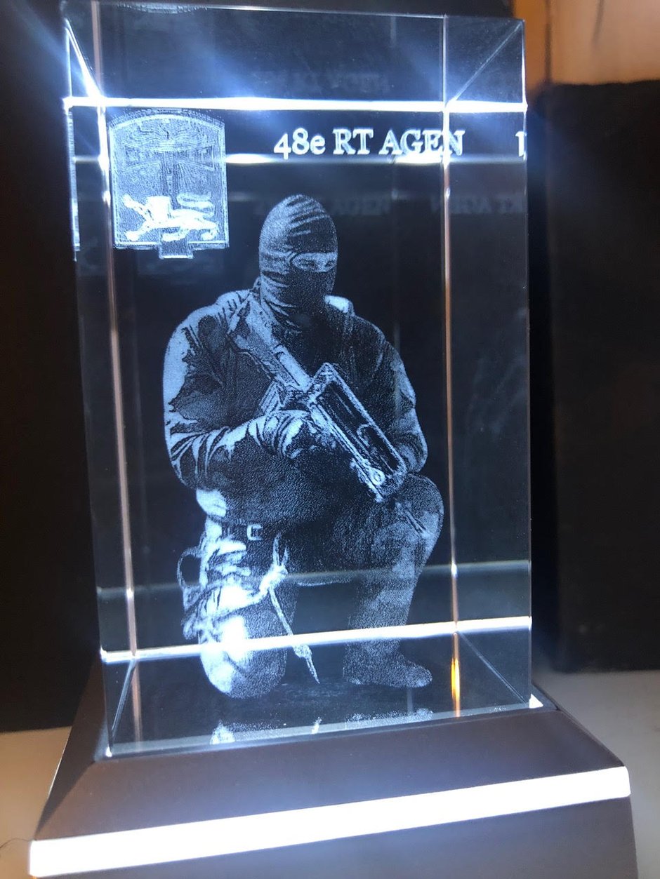 Uniparis est expert en la gravure sur verre personnalisé depuis 30 ans. En effet, nous vous offrons un savoir-faire exceptionnel. À l’aide d’une technologie laser et des logiciels de conversion, nous convertissons en 2D ou 3D sur votre gravure de photo sur verre pour les militaires et leurs proches au format de votre choix.